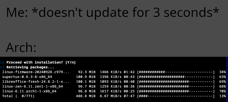 arrow-up1116arrow-down1imageto be fair i actually didn't update for a few monthsplus-squarelemmy.mlSaltyIceteaMaker@lemmy.ml to linuxmemes@lemmy.world · 4 hours agomessage-square23fedilink