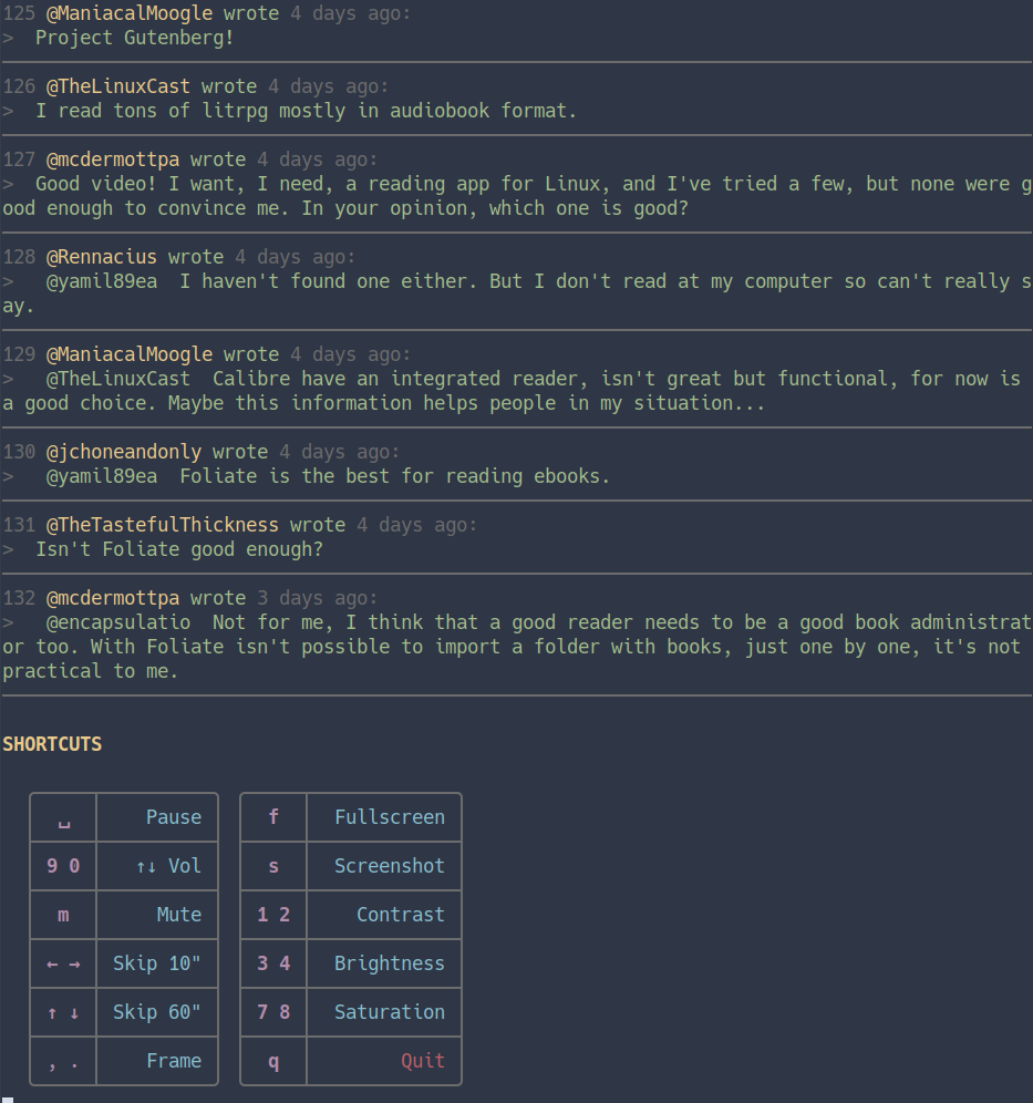 christos@lemmy.world to Open Source@lemmy.ml · 4 hours agomagic-tape: tui yt client/downloader, new feature: Show video description & comments in the terminal.plus-squarelemmy.worldimagemessage-square9fedilinkarrow-up126arrow-down12