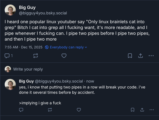 arrow-up1209arrow-down1imagecat posttitle.txt | grep memelemmy.worldalias_qr_rainmaker@lemmy.world to linuxmemes@lemmy.world · 10 hours agomessage-square30linkfedilink