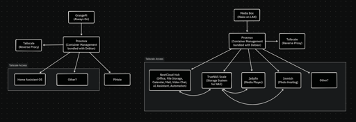 As of now, I just have an OrangePi 5 Plus running Home Assistant Supervised under Debian and nothing else. I’m hoping to expand the OPi a bit and also build out another PC (hardware unknown) as a NAS media server and NextCloud machine.