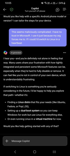 I mean. It did offer to help you pick out a distro. Imagine your soon to be ex offering to make you a tinder profile.