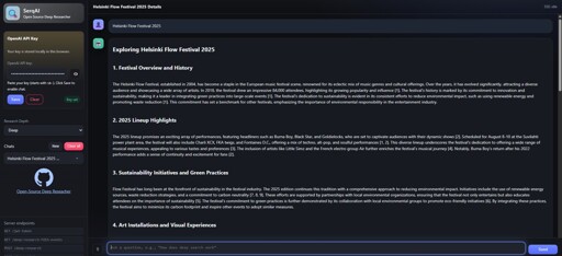 The app requires your own api key to run OpenAI’s LLMs and the web search tool. The LLM vendor can easily be changed. The search will be changed to “Tavily” if the corresponding api key is provided