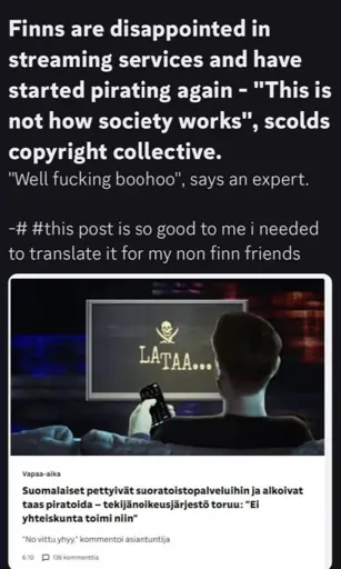 (paraphrased) “The user of the illegal service may fund the activities of criminal organisations, says Executive Director Jaana Pihkala from the copyright organisation TTVK.”
