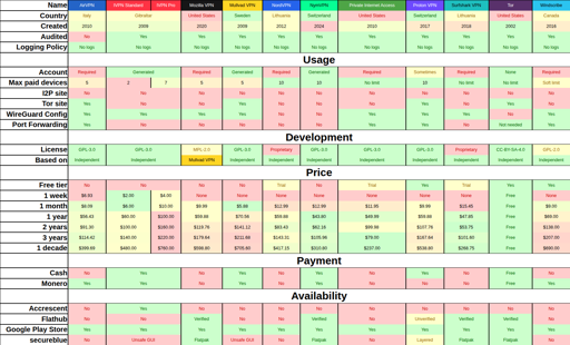After making a post about comparing VPN providers, I received a lot of requested feedback. I’ve implemented most of the ideas I received.