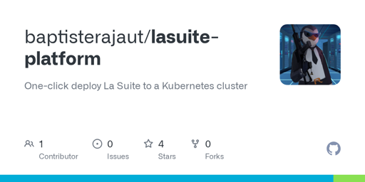 La Suite numérique is a open source WIP office suite developped by french and german governments to replace proprietary office suite. Theyre self-hosteable but i found the official install instructions unclear to follow, and they have only instructions to install one app at a time. So i’ve used helmfile and did a one-command install myself.