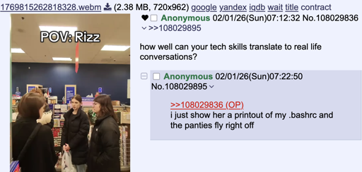 kali_fornication@lemmy.world to linuxmemes@lemmy.world · 12 days agoLadies, form an orderly linelemmy.worldimagemessage-square25linkfedilinkarrow-up1384arrow-down14