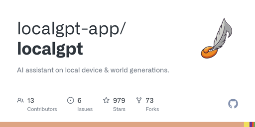 arrow-up12arrow-down1external-linkLocalGPT – A local-first AI assistant in Rust with persistent memorygithub.com☆ Yσɠƚԋσʂ ☆@lemmy.ml to Technology@lemmy.mlEnglish · 14 days agomessage-square0linkfedilink