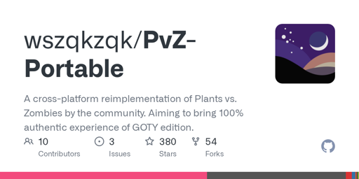 cantankerous_cashew@lemmy.world to Open Source@lemmy.ml · 12 days agoPvZ-Portable: cross-platform foss reimplementation of Plants vs. Zombiesgithub.comexternal-linkmessage-square6linkfedilinkarrow-up1147arrow-down10