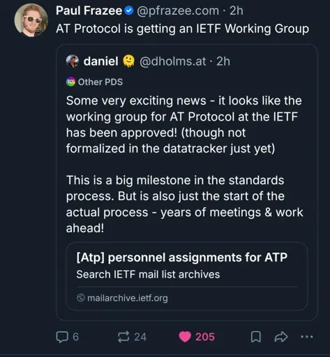 arrow-up171arrow-down1imageAtproto is getting an ietf working grouplemmy.dbzer0.comirelephant [he/him]@lemmy.dbzer0.com to Fediverse@lemmy.worldEnglish · 20 days agomessage-square19linkfedilink