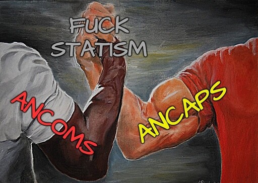 Ancom and Ancap both agree that the means of production goes to whomever is organized enough to control it.