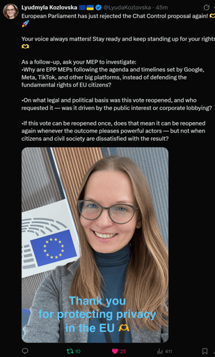 EDIT: apparently EPP voted against not because they want to support privacy but because the proposal was not enough invasive. they were afraid that it would have stopped their Chat control 2.0 proposal.
